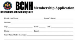 Print and complete the form. Mail the form with a check made payable to British Cars of New Hampshire to: